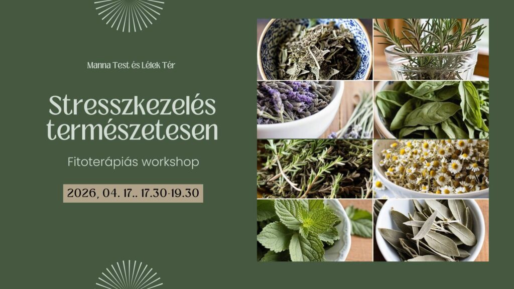 Szeretettel várlak a Stresszkezelés természetesen című fitoterápiás workshopon, ahol megismerheted, hogyan segíthetnek a gyógynövények és az illóolajok a stressz csökkentésében és a testi-lelki egyensúly visszaállításában.